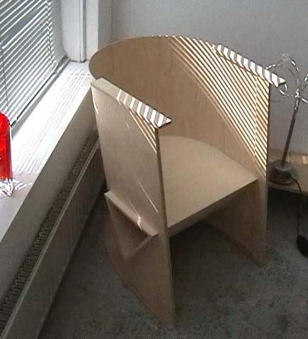 Speciale stoel gemaakt van gebogen Berken hout.