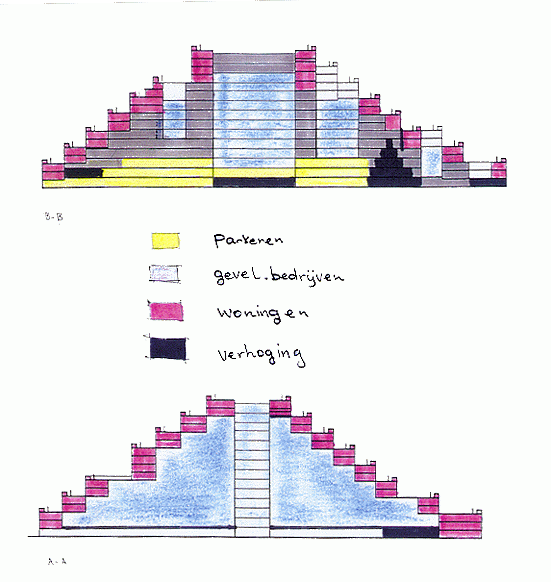 'LaMontagne' bestaat uit een buitenschil van woningen en een binnenschil waarin bedrijven met een breed scala van economische, culturele, en dienstverleningsfuncties gevestigd zijn.