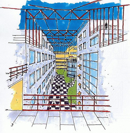 Kleine parkeerunits in combinatie met andere activiteiten zoals fietsenstalling en reparatie, bloemenkiosk en camera's aangesloten op de woonkamers en aanwezigheid van een conci rge zullen de veiligheid en het veiligheidsgevoel vergroten.